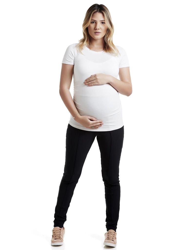 A Blusa Gestante é feita para acompanhar o crescimento da barriga e acomoda melhor a silhueta da mamãe.