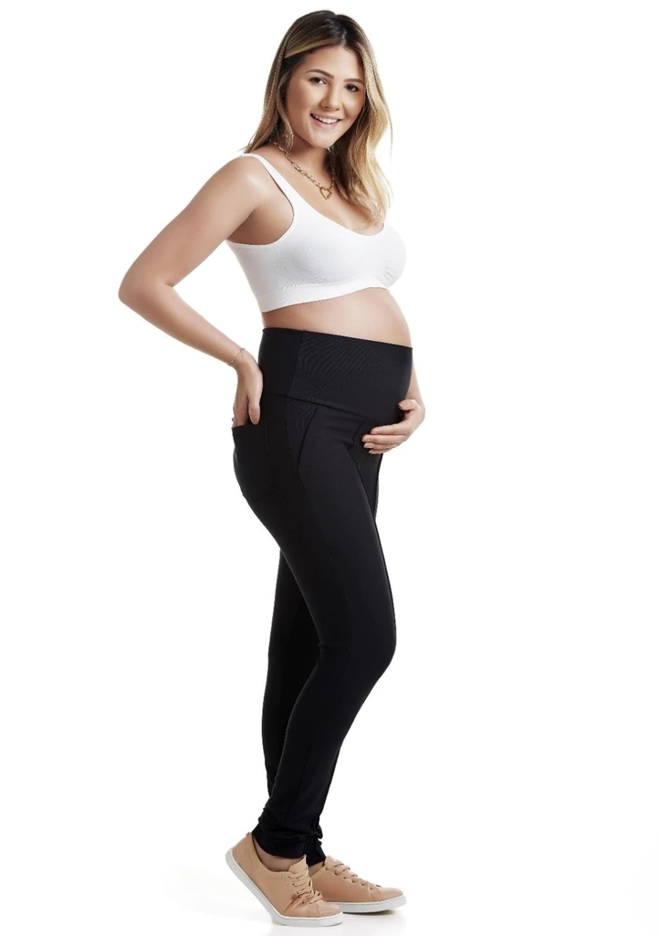 - Segurança e sustentação: nesta fase é importantíssimo protegermos a região da barriga de movimentos bruscos e pancadas. A calça gestante dará uma maior sustentação á barriga, melhorando a postura e trazendo maior segurança para a mamãe.