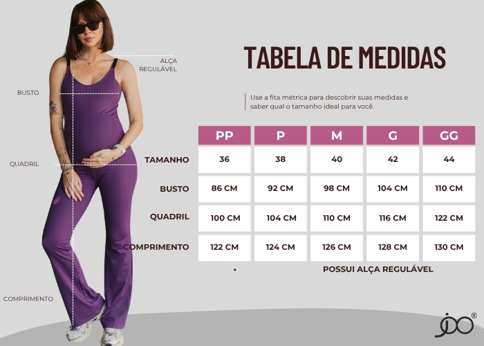 O tecido uva fosco é super elástico, acompanhando o crescimento da barriga e retornando ao tamanho original, garantindo versatilidade e durabilidade. A barra flare da calça cria um look moderno e alonga a silhueta, perfeito para treinos, passeios ou para compor aquele visual athleisure cheio de atitude.