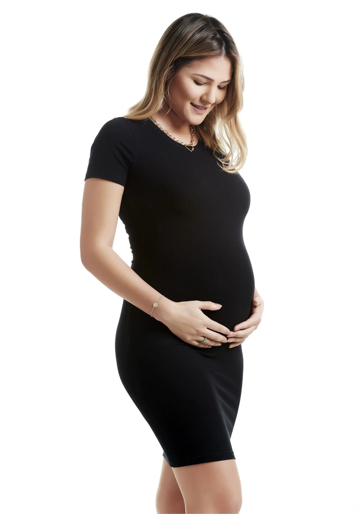 O vestido canelado foi desenvolvido pensando nas gravidinhas que querem uma peça única básica, prática e versátil para o dia a dia, um vestido com modelagem impecável, para ressaltar a barriga.